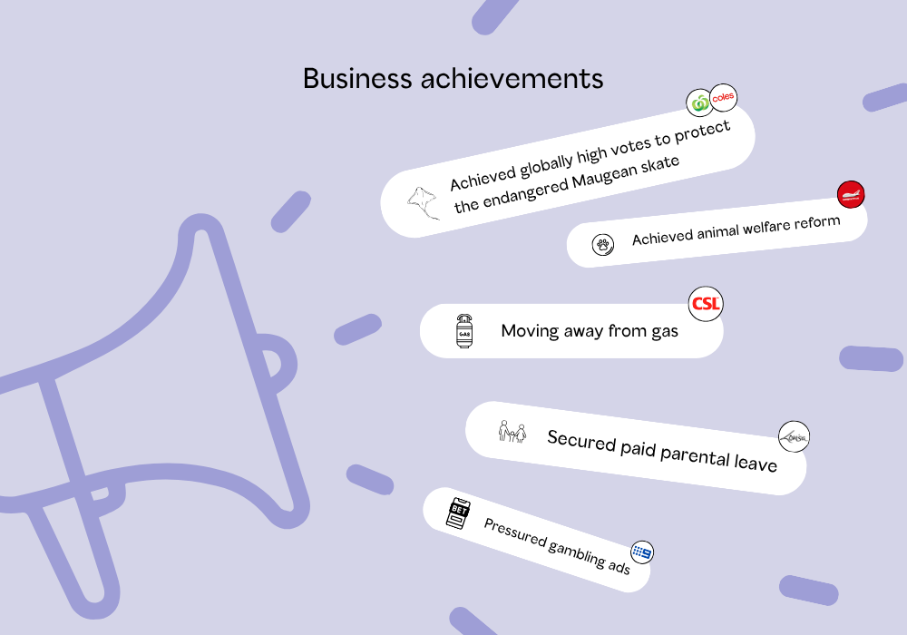 Real impact: In just our first year, SIX has already achieved globally high votes at Coles and Woolworths AGMs to protect the endangered Maugean Skate; pushed healthcare giant CSL Ltd to disclose its gas transition risks; secured access to paid parental leave for 1,700 Lovisa workers; and forced Webjet to drop animal cruelty tourism.